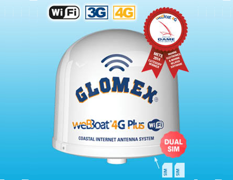 weBBoat 4G PLUS is the first, unique and award-winning 4G/3G/Wi-Fi DUAL SIM integrated system to surf the Internet, ensuring stable and high speed connections up to, approximately, 20 miles from the coast. weBBoat 4G PLUS is equipped with 2 4G Diversity antennas that receive the Internet signal and creates a personal and safe WiFi network inside the fibreglass boat, that can be used simultaneously by 32 different and authorized devices. Moreover, if a known Wi-Fi network is present and available (for example the marina Wi-Fi), weBBoat 4G PLUS will automatically connect to it to limit the internet fees. weBBoat 4G PLUS is a PLUG & PLAY product as 4G GSM module is integrated inside the dome and, for its operation, only needs a 12/30 Vdc power cable and one/two SIM cards for surfing the Internet to avoid unwanted roaming costs; all this makes weBBoat very easy to install. weBBoat 4G PLUS is also easy to use thanks to the new free App Glomex, available for iOS and Android.