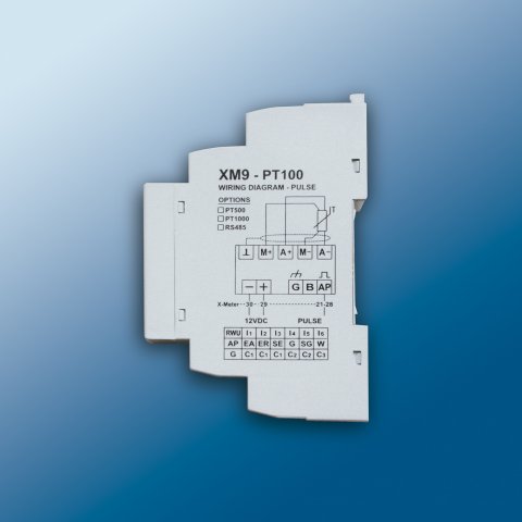 XM9 device allows the reading of temperature by means of a PT100, PT500 or PT1000 probe and to convert the read value on the pulse output with a frequency between 0Hz and 5Hz. In particular, the minimum value of the measure scale will imply an output pulse of frequency 0Hz ( 0 pulses per second ), while the output pulse corresponding to the full-scale value will imply an output pulse of frequency 5Hz ( 5 pulses per second ). The applicable probes may have 2, 3 or 4 wires, eventually with shielded cable.