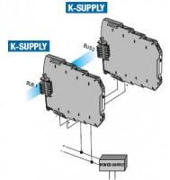 SUPPLY SYSTEM. With the exception of loop powered instruments, which aren’t bus powered, K Line signal conditioners can be powered in 3 different ways: by the springcage terminal block (24 Vdc direct from power supply) or by SMART SUPPLY system. SMART SUPPLY system is based on expandable KBUS connector. Up to 16 devices, the distribution of power supply is possible connecting a single device at voltage source, as whole consumption doesn’t exceed 400 mA. Over 16 and up to 75 devices, with maximum current consumption of 1,6 A (approx 21 mA per module), it’s needed K-SUPPLY module that gets overvoltages protections on-board.
