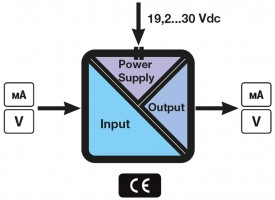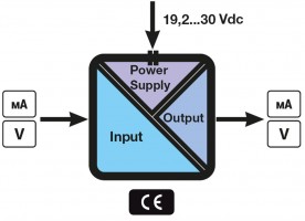 DC current / voltage to current / voltage isolator converter (2 wire power transducer) |