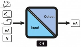 Loop powered isolator / universal converter (mA, V, Ohm, RTD, TC) |