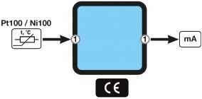 Pt100 and Ni100 to DC current converter (loop powered) |