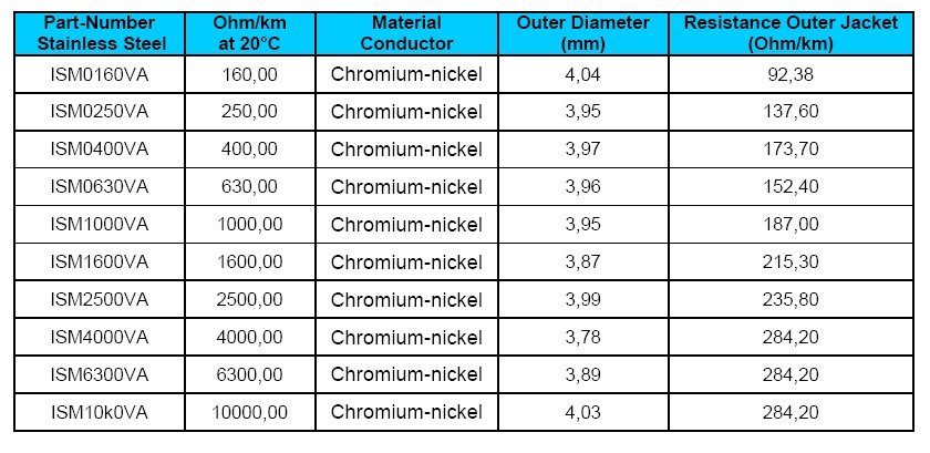 The mineral-insulated heating cable ISM is due to their structure very sturdy and safe for use in industrial and hazardous environments. The different types of Jackets are highly resistant to chemical attack. The specific resistance of ISM will cause the power output increases or decreases by changing the length of the heating cable. The heating cable will be soldered or laser-welded with connection sleeves to special cold-ends (Standard length 1,2m). Depending on the application and temperature requirements, various outer jackets made of stainless steel, Cupronickel or Incoloy are available.
