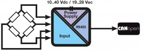 EZC-SG is a strain gauge signal converter. Measurements taken using the 6-wires or 4-wires technique are available through CANopen protocol. Sensitivity from 1 to 64mV/V, settable by DIP switch for integer values, via software for real/integer values. Stable weight indication via CANopen/digital output. Remote writing of the tare in volatile and/or non-volatile memory by digital input/CANopen.