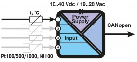 4 Ch RTD (P100, Ni100, Pt500, Pt1000) input CANopen module |