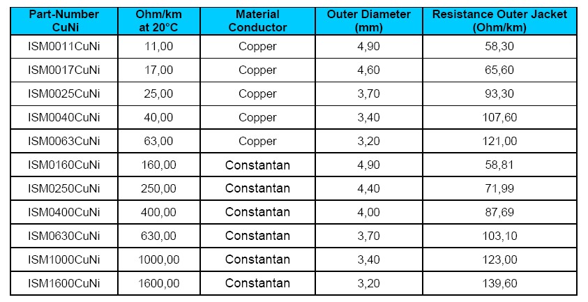 The mineral-insulated heating cable ISM is due to their structure very sturdy and safe for use in industrial and hazardous environments. The different types of Jackets are highly resistant to chemical attack. The specific resistance of ISM will cause the power output increases or decreases by changing the length of the heating cable. The heating cable will be soldered or laser-welded with connection sleeves to special cold-ends (Standard length 1,2m). Depending on the application and temperature requirements, various outer jackets made of stainless steel, Cupronickel or Incoloy are available.