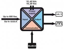(Single or three - phase) RMS voltage, RMS current, active, re-active, apparent power, frequency, power factor, energy (bi-directional) |