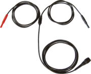 The Measure lead TP-C1812B is a low noise differential measure lead designed to be used with the Handyscope HS4 DIFF and the Automotive scope ATS5004D. This 3 meter long measure lead splits in two individual ends of each 1.2 meter long. The BNC connector at one end plugs directly on the instrument. The two other ends each feature a single 4 mm banana jack, on which application specific test points, clamps or probes can be plugged.