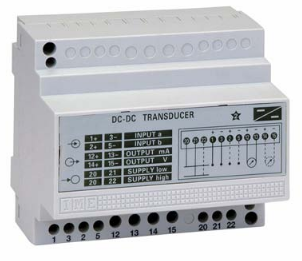 Direct or pulsanting voltage transducer - Format: 6 DIN module - Input: value on request +-1…+-300 V - Output: 4...20 mA - Aux: 115 e 230 Vac - Code completion: specify input value corresponding to output