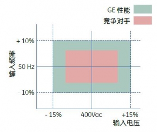 即使在从不稳定的AC电源(即,柴油发电机)运行时,宽泛的AC输入电压和频率窗口也可避免不必要的电池放电。