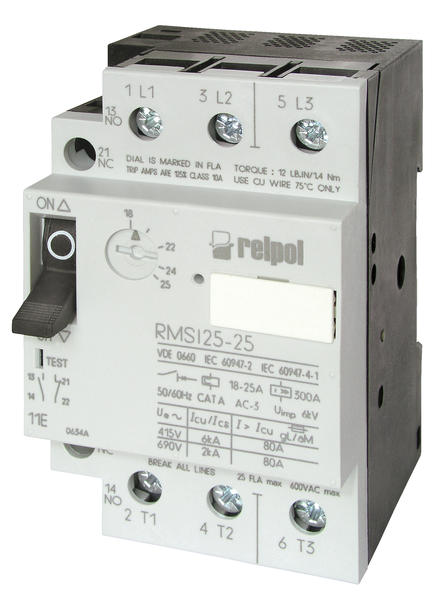 Motor circuit-breaker 3-poles, Rated load: 18 - 25 A/400VAC, Aux contacts: 1N/O+1N/C