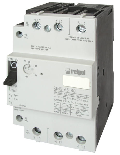 Motor circuit-breaker 3-poles, Rated load: 45 - 63 A/400VAC, Aux contacts: 1N/O+1N/C