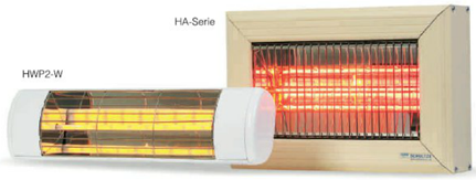 These weatherproof heaters (protection type IP55) are ideally suited to outdoor areas. They deliver their full output instantly when energized and additionally provide a pleasant lighting.