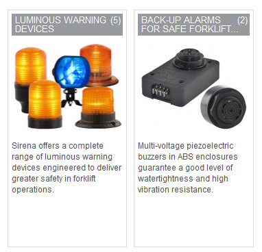 Signaling devices for forklift trucks. Sirena offers a complete range of luminous warning devices engineered to deliver greater safety in forklift operations.