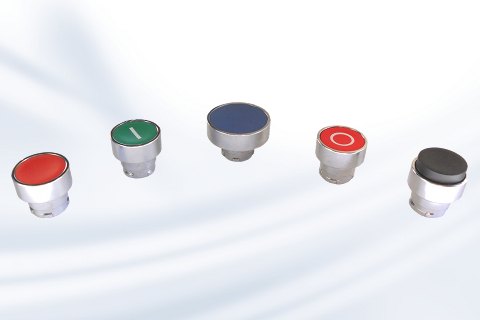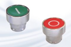 Pushbuttons 22 mm diameter, no light, with push cap flush or external, start/stop text.