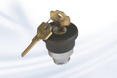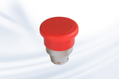 Mushroom type pushbuttons, several sizes, with snap action or with latch and realise by rotating, or release by turnkey.