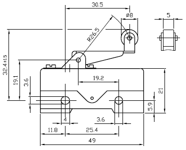 | Type 5AL : Roller lever - reverse action - Upon request lever other side, steel roller, transversal roller | ||