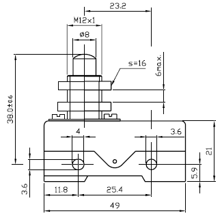 Actuator 0: Basic switch - pin plunger 1S29 : Plunger 1A : Plunger, thread short 1A58 : Plunger, thread 1BL : Roller plunger, thread 3A : Lever - reverse action 5AL : Roller lever - reverse action 6AL : Stiff roller lever - reverse action 7A40 : Direct action adjustable lever 7AC : Direct action adjustable lever 8AL40 : Direct action adjustable roller lever |