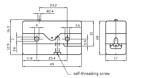 DIN 41 635, form A 49 x 21 x 17 mm |
