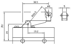 | Type 5AL : Roller lever - reverse action - Upon request lever other side, steel roller, transversal roller | ||