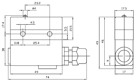Actuator 0: Basic switch - pin plunger 1S29 : Plunger 1A : Plunger, thread short 1A58 : Plunger, thread 1BL : Roller plunger, thread 3A : Lever - reverse action 5AL : Roller lever - reverse action 6AL : Stiff roller lever - reverse action 7A40 : Direct action adjustable lever 7AC : Direct action adjustable lever 8AL40 : Direct action adjustable roller lever |