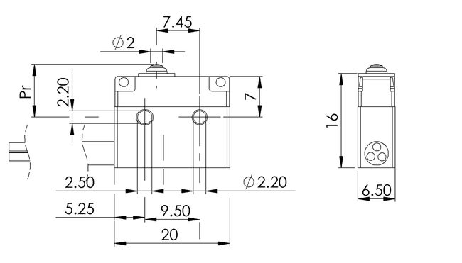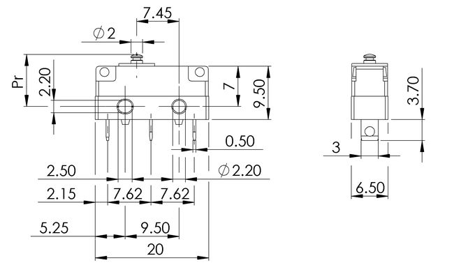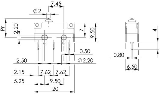 Actuating Force Fa max. (N) Release Force Fr min (N) Free Position Pr (mm) Operating Position Pa (mm) Over-travel sr min. (mm) Differential movement sd max. (mm) |