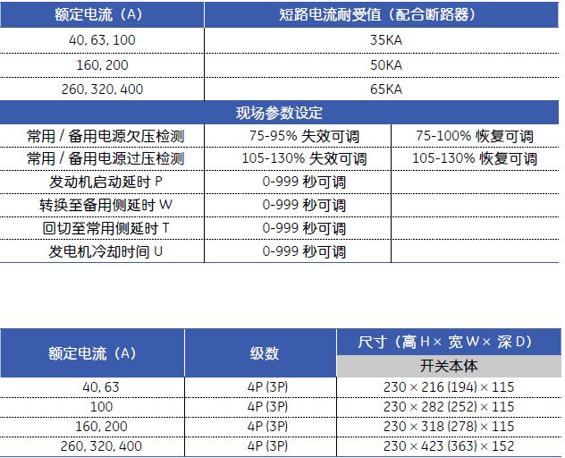 额定电流40A~400A (3 和4 级)
