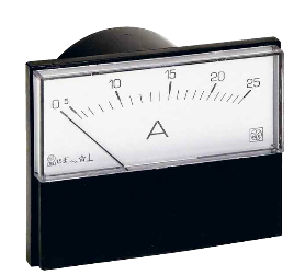 A.C. ammeter (moving iron) - Format: 76x58 mm / rear ø 54,5 mm - Insertion: on CT - Current: 25/1 A - Scale: 0…In