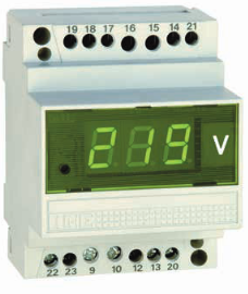 Unidirectional direct voltage (direct input) 1000 points - Format: 4 DIN module - Alarm threshold: programmable 2 max or 2 min or 1 min + 1 max - Input: 0...100/0...500 V selectable - Aux: 230 Vac - Visualiz: direct 0...99,9/0…500 V