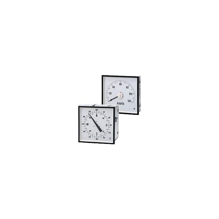 the current wind direction and wind speed are clearly displayed. The data is unambiguously interpretable on the ergonomically well-made scale faces. Robust moving-coil measuring system and metal housings guarantee long-term stability and linearity. Standard housings (Q 144 format) permit easy mounting into control panels.