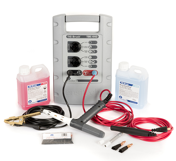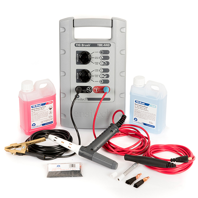 TIGBrush不锈钢焊缝清洗抛光钝化TBE-440的电源与Ensitech原装液体和附件一起使用,使用户安心,因为他们将始终获得高效率,安全和效果好的焊缝清洗结果。