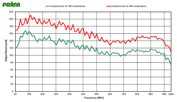 Power at 3 dB compression : 120 W min. up to 450 MHz / 80 W min. from 450 MHz to 1000 MHz