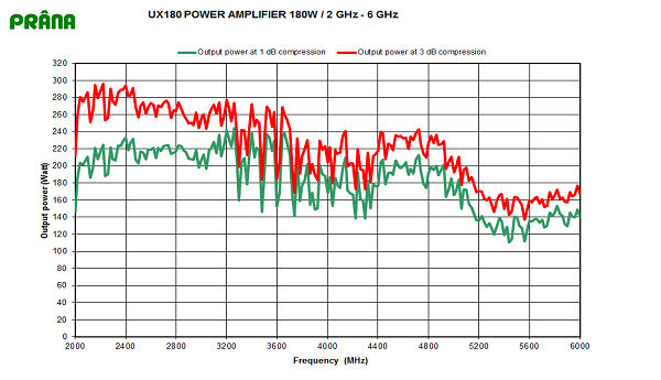 Power at 1 dB compression : 100 W min. up to 4 GHz / 80 W min. from 4 GHz to 6 GHz *