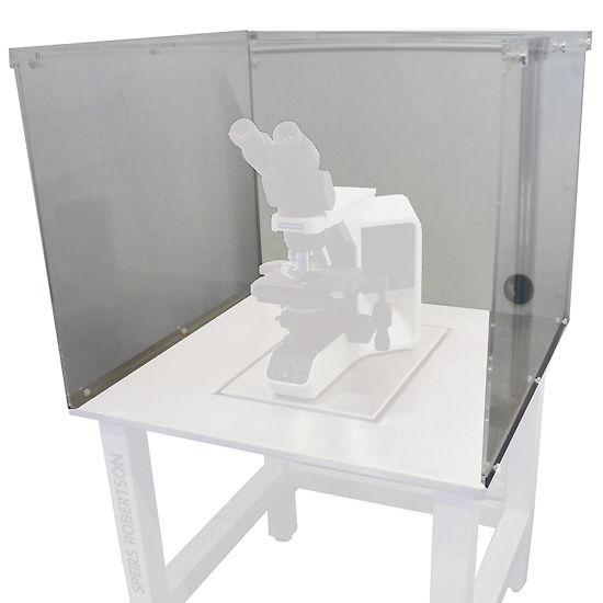 Acoustic vibrations from fans, doors and other sources can prevent accurate measurements by disturbing equipment and causing temperature changes. The acrylic hoods are simply placed over the equipment onto a worktop and prevent disturbances reaching sensitive instruments such as balances and microscopes. Hoods should be placed on a flat surface using the base tray provided.