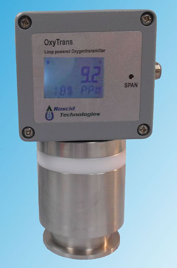 The Model OxyTrans is simple, accurate and Economic measurement of Oxygen at trace and % levels. A simple Display and one point calibration allow easy and fast start-up of the instrument.