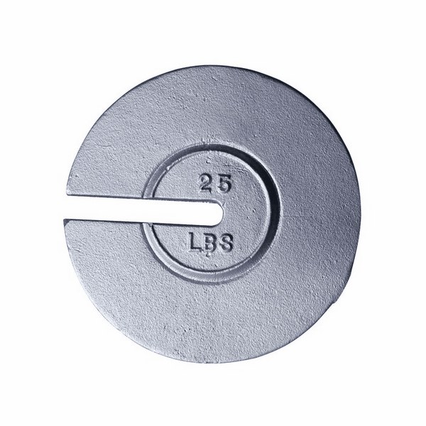 Cast Iron Slotted Weights above 2 kg/5 lb have adjusting cavities. Weights below 2 kg/5 lb are adjusted by removing material from the underside of the weight. Each weight has its nominal value cast into the topside of the weight.
