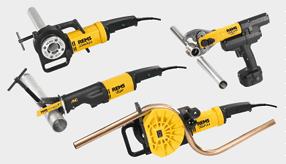 Pipe cutters, cutter wheels, electric pipe and tubing cutter, cordless pipe and tubing cutter, pipe cutting machines, pipe shears, cordless pipe shear, pipe cutting and pipe chamfering tools, pipe deburrers