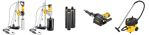 Electric diamond core drilling machines, drill stands, universal diamond core drilling crowns, universal diamond core drilling crowns LS, tile drilling, diamond chasing and cutting machine, diamond cutting discs, dry and wet extractors