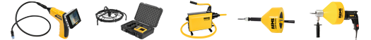 Endoscope camera, electronic camera inspection system, drain cleaners for manual and electric operation, electric pipe cleaning machine, electric pipe and drain cleaning machines