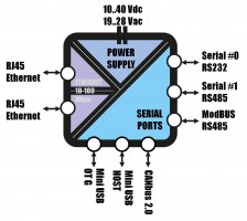 | Communication ports: | 2xEthernet 10/100 (RJ45); 1x RS232 1xRS485; 1xRS485 – ModBUS, 1x CANbus 2.0, 2 mini USB | |